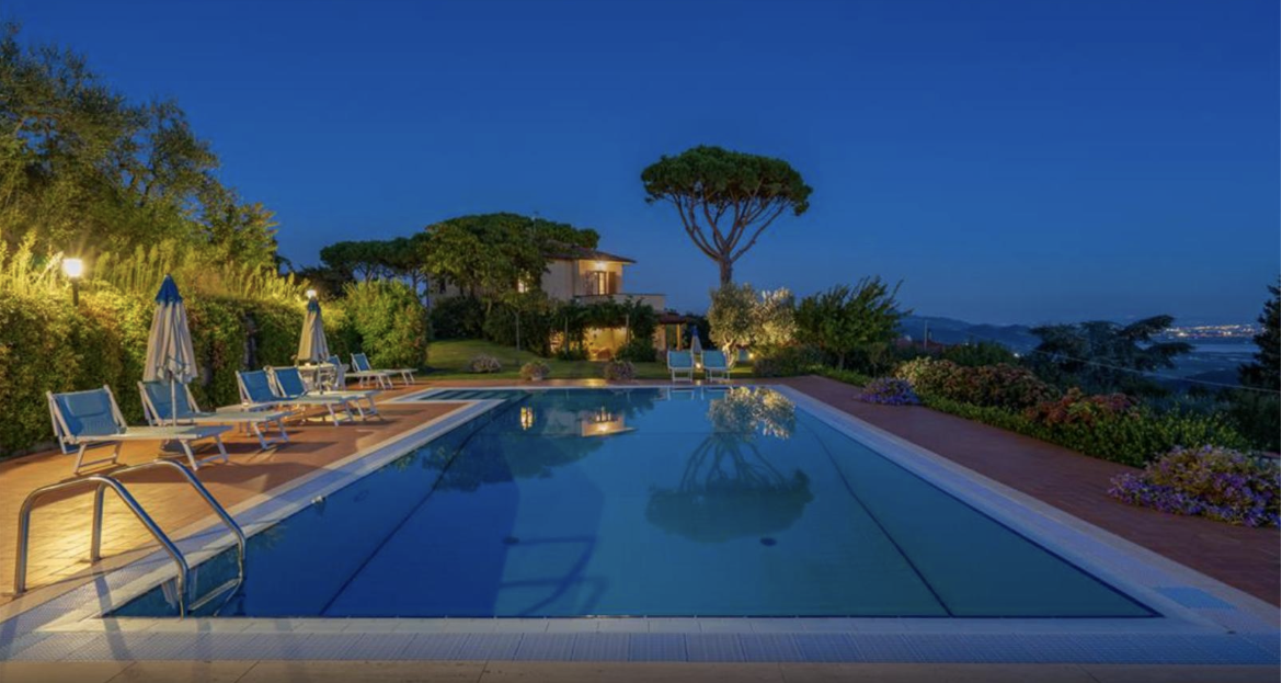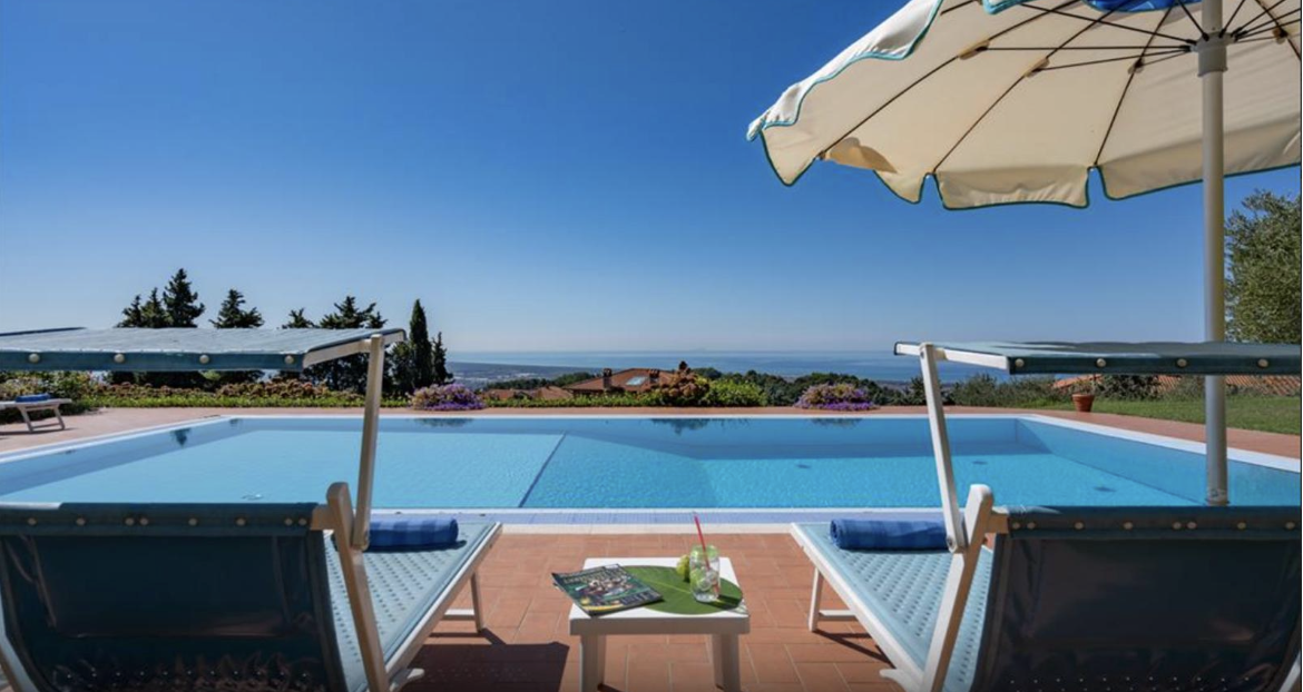 In the beautiful hills of Massarosa, just minutes from the beaches of Versilia, this unique property offers a breathtaking 360° panoramic view over the sea and the Lucca countryside.