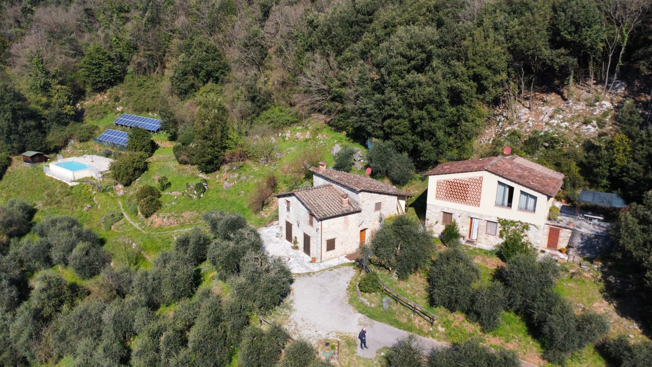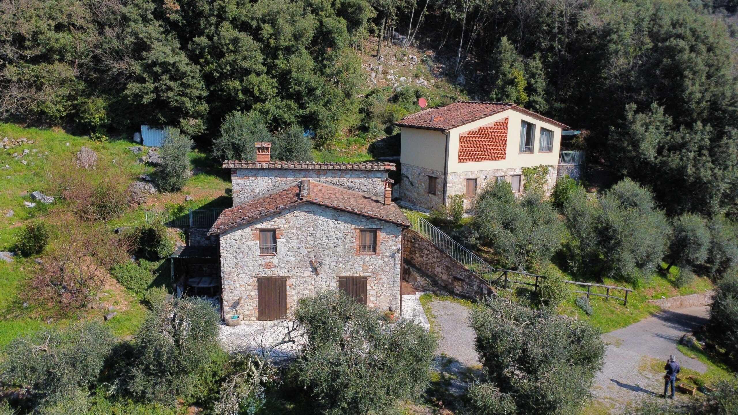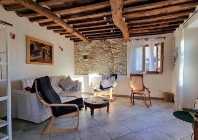 A unique complex of two beautifully restored 2 independent stone houses, surrounded by approx. 1 hectare of land with garden, olive grove, and woodland.