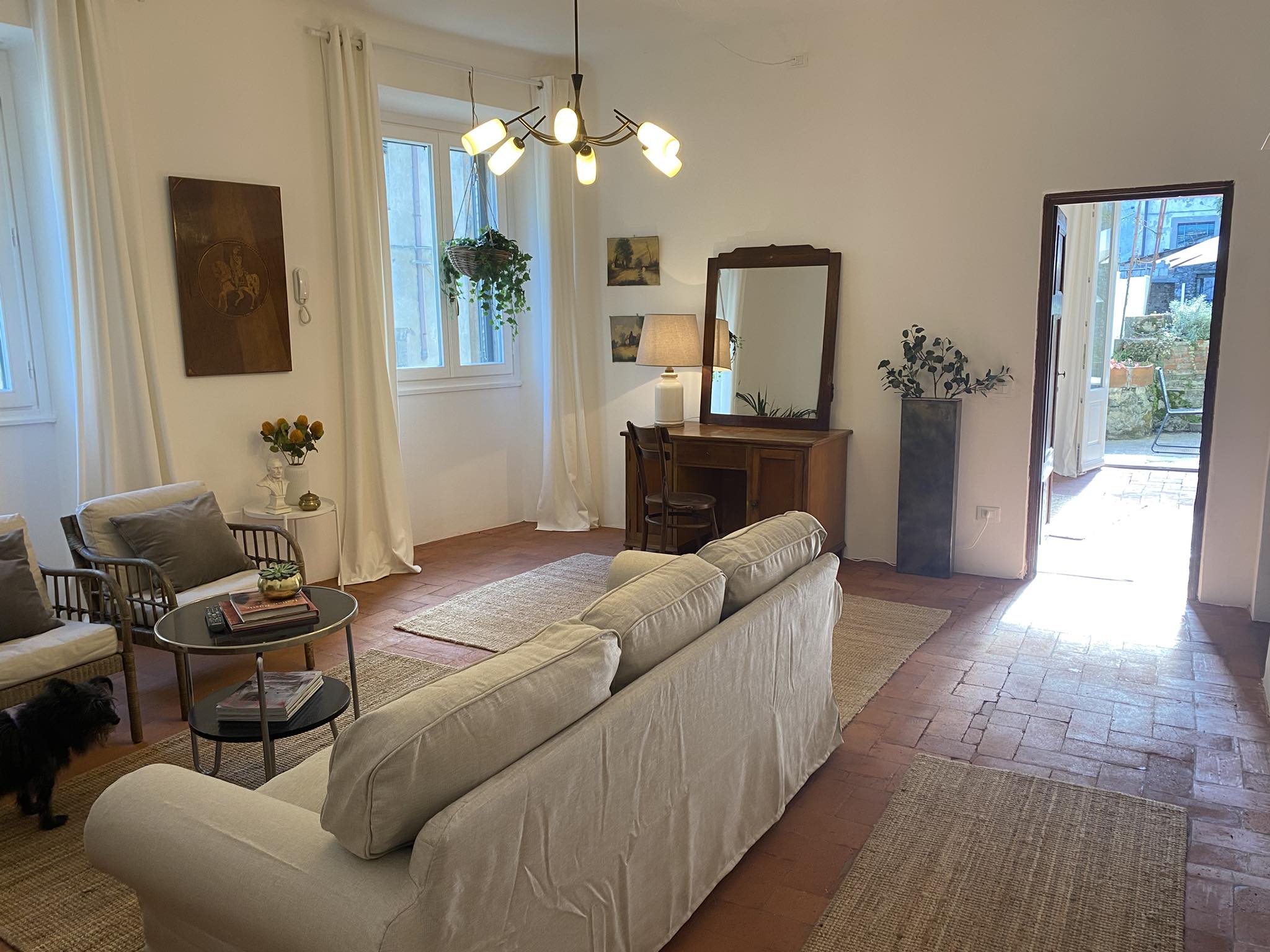 For sale in the charming town of Bagni di Lucca, spacious ground floor apartment with 128 sqm of living space plus a private garden of 117 sqm.