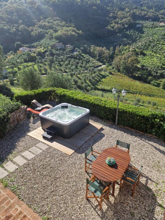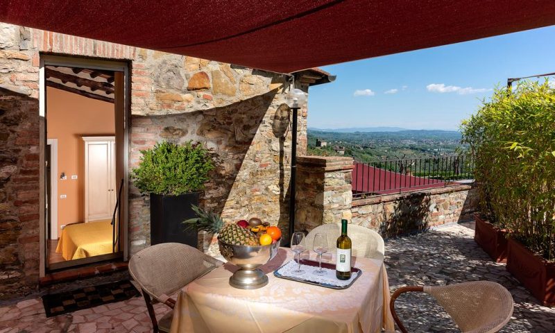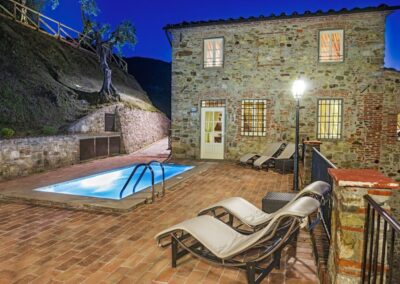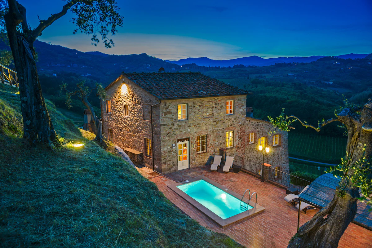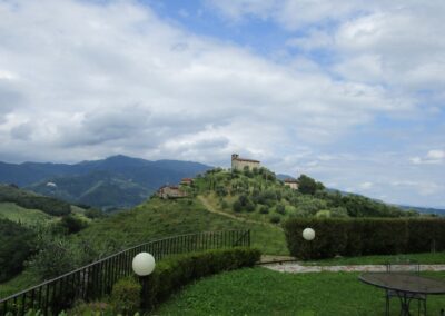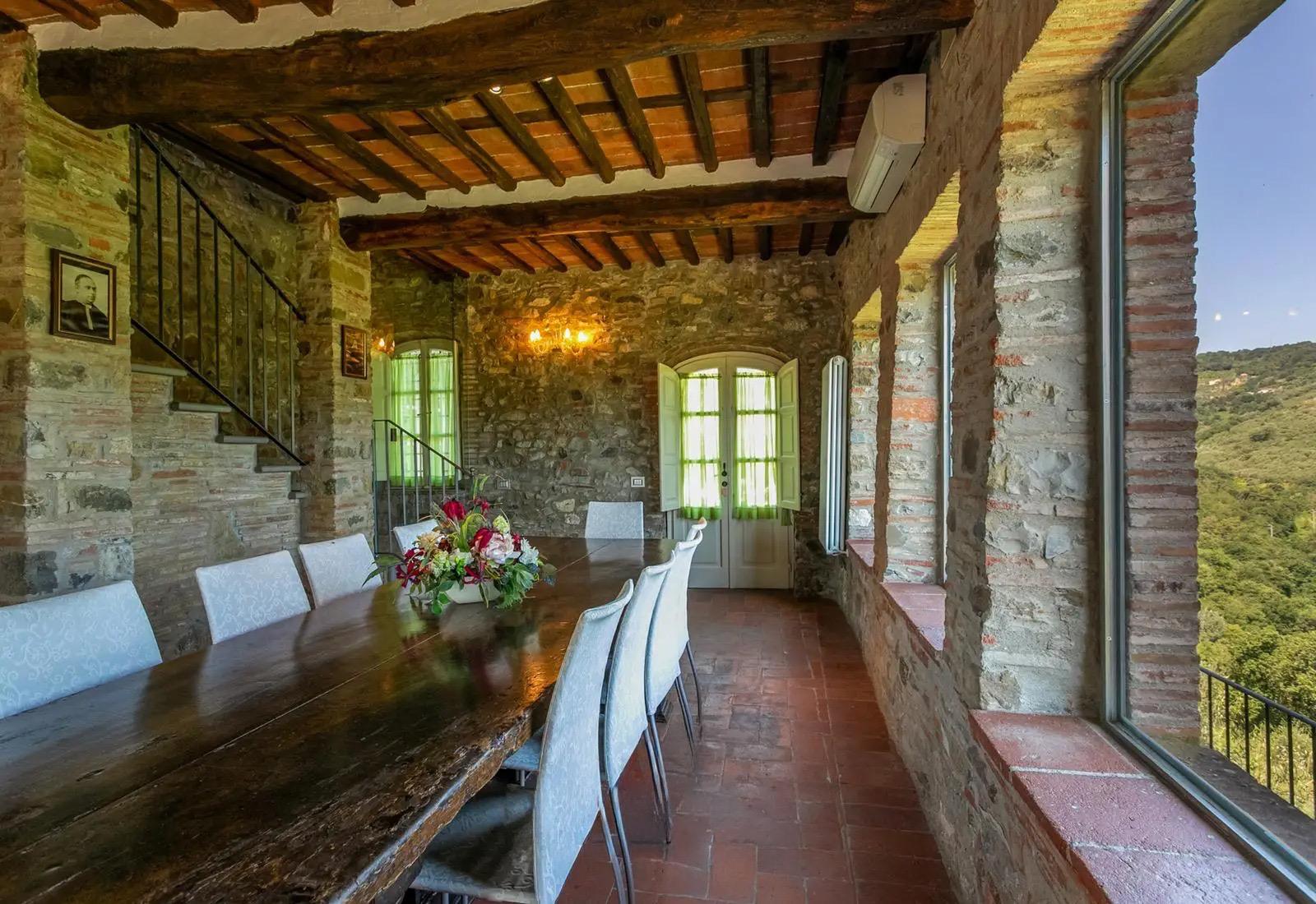 In the heart of the Tuscan countryside, just 7 km from Lucca, this extraordinary medieval castle dating back to the year 1000 stands proudly on a private hilltop, surrounded by olive groves, vineyards, and rolling hills.