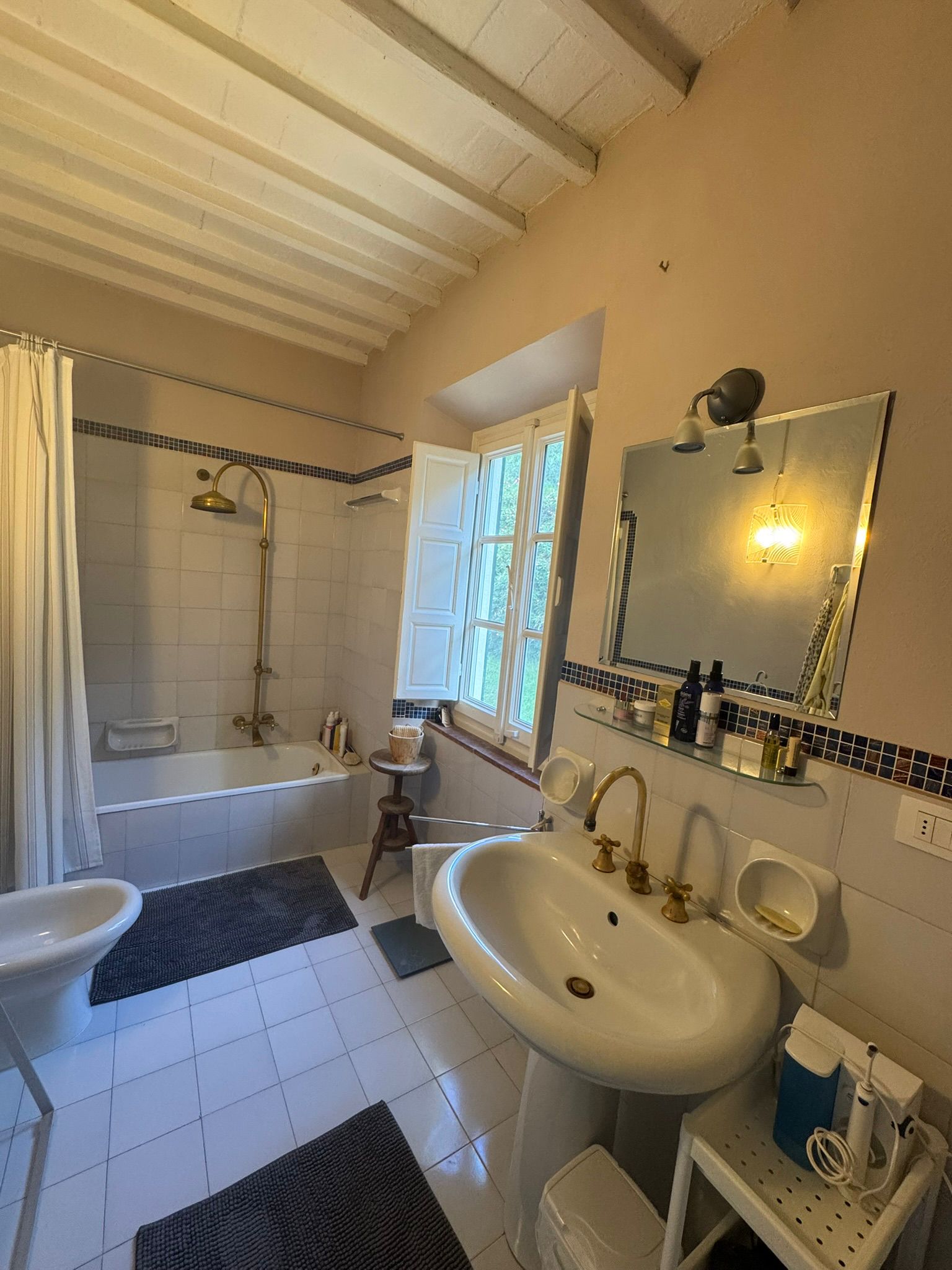The farmhouse is arranged over multiple levels and is currently divided into two interconnected residential units, easily separable to create two independent homes — ideal for a large family, guests, or hospitality use.