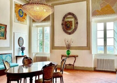 Discover the charm of authentic Tuscany in this beautifully restored historic villa located in Fauglia, one of the scenic hills surrounding Pisa. This elegant property combines ancient beauty with modern comfort, offering breathtaking views, artistic frescoes on the ceilings, and a true sense of peace and serenity.