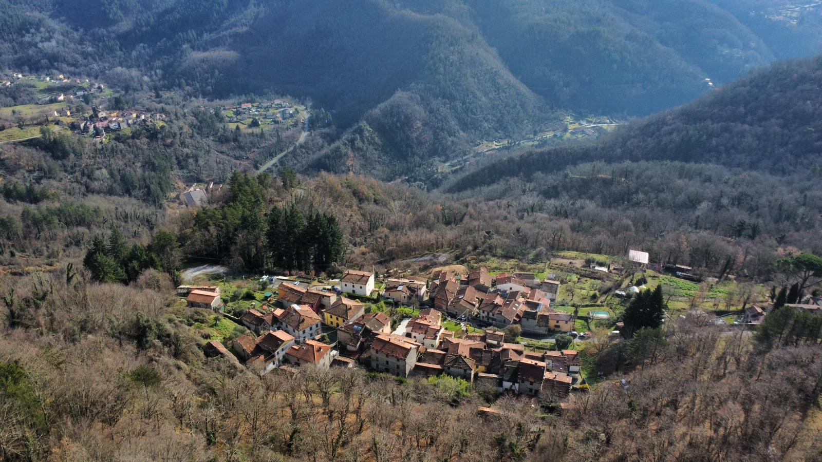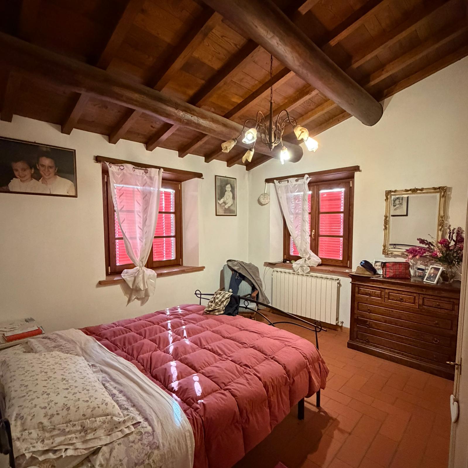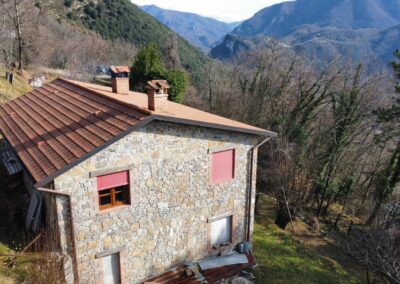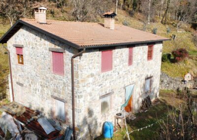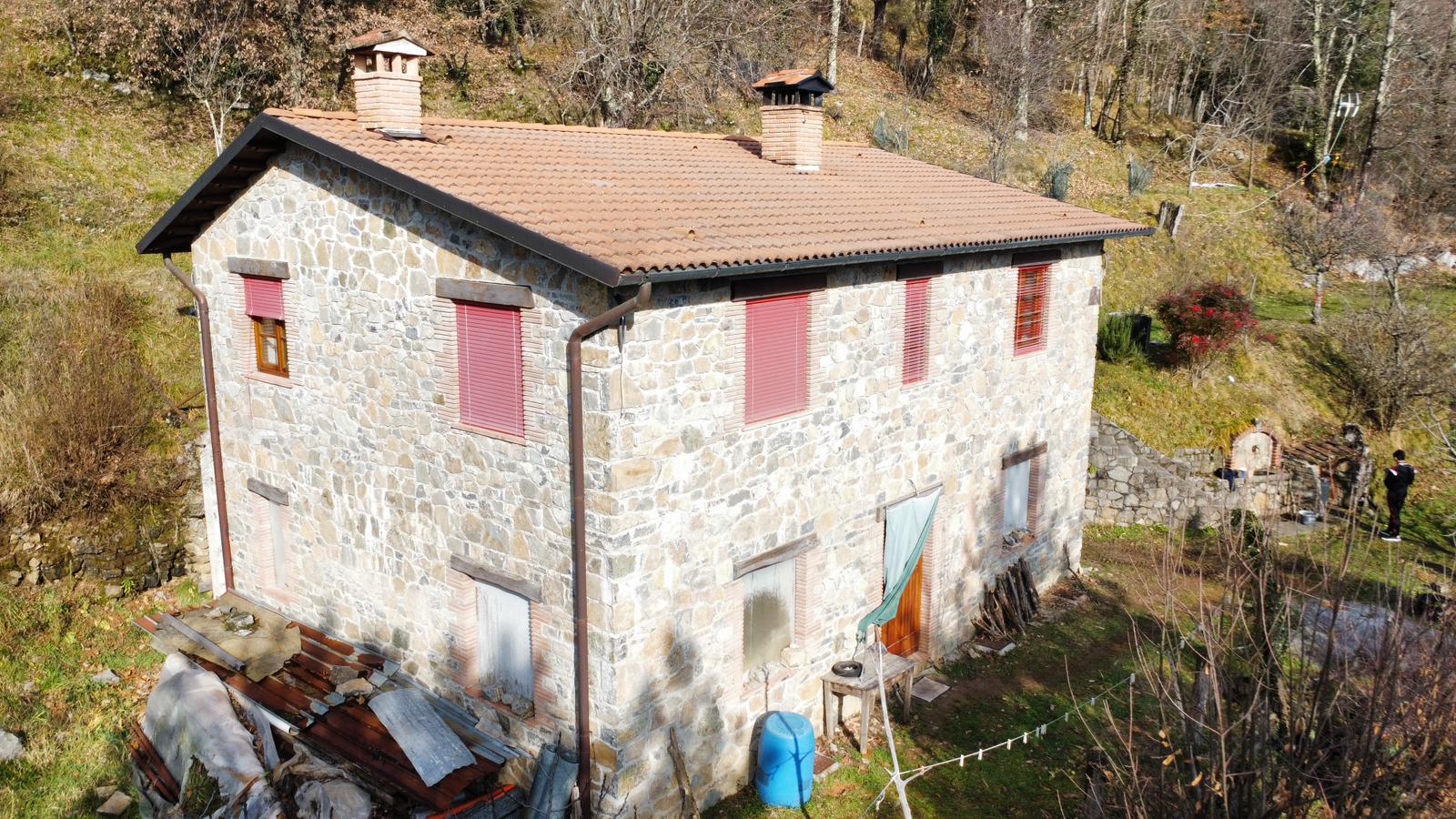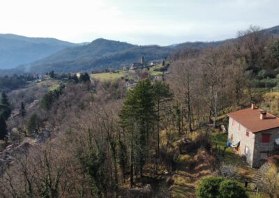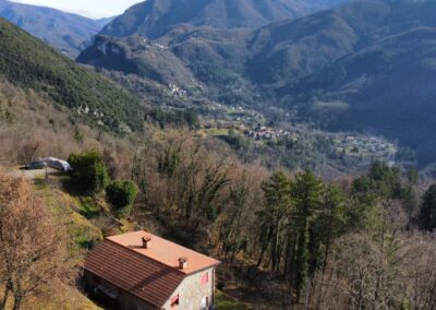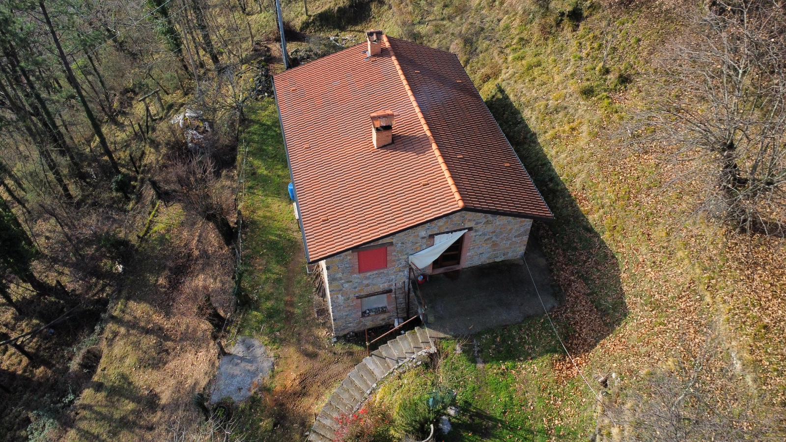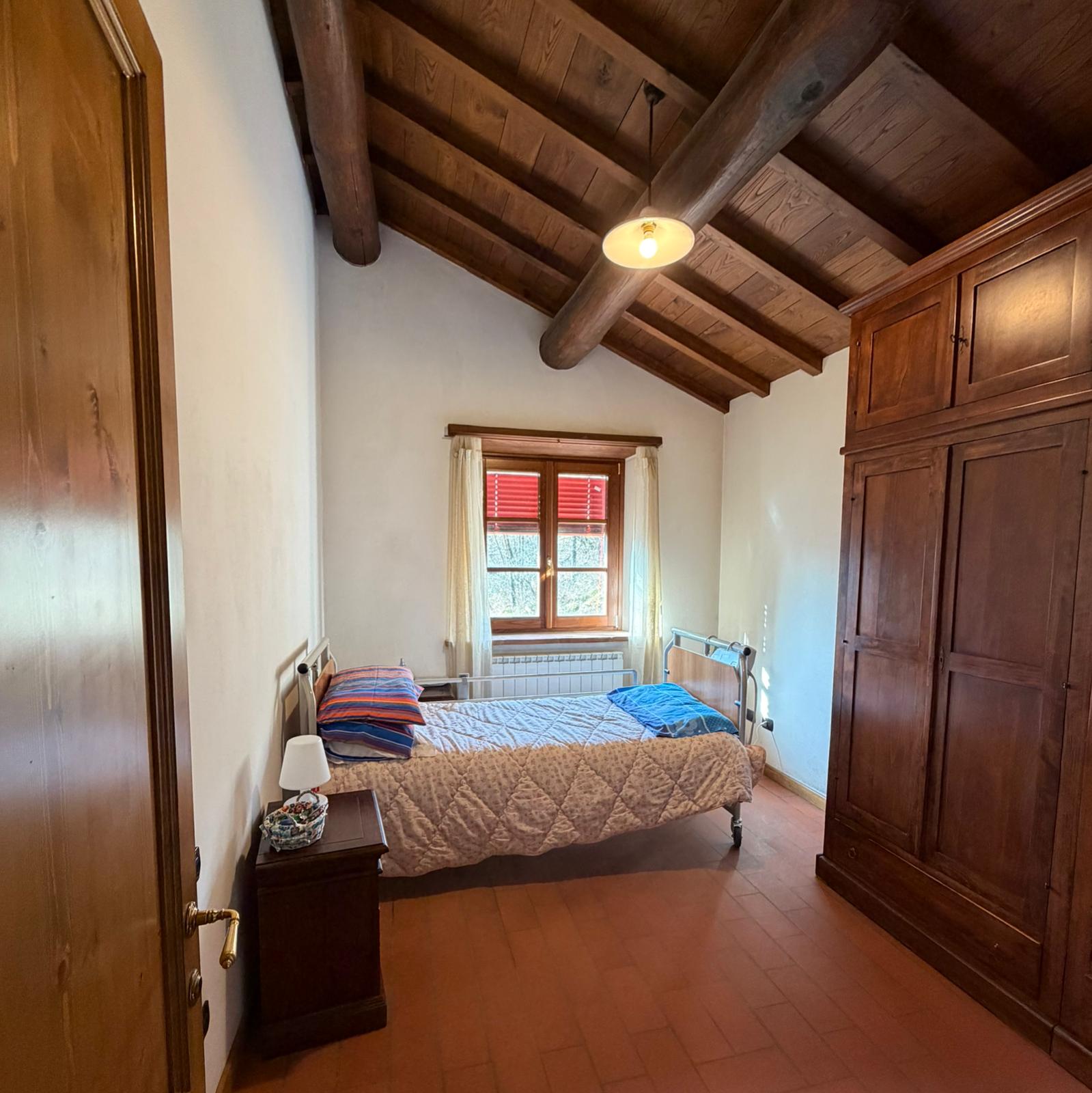 For sale: a charming independent house with over 4,000 sqm of terraced land, fully fenced with posts and wire, set in a quiet and secluded natural environment. The property is reached via a well-maintained gravel road; the final stretch, within the property, gently slopes through a chestnut woodland and becomes flat near the house, offering ample parking space.
