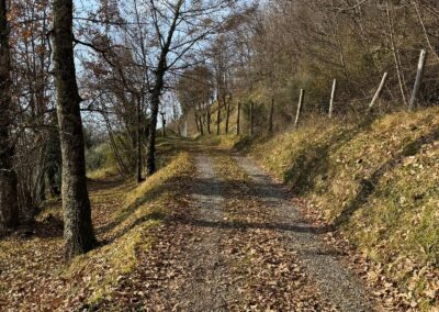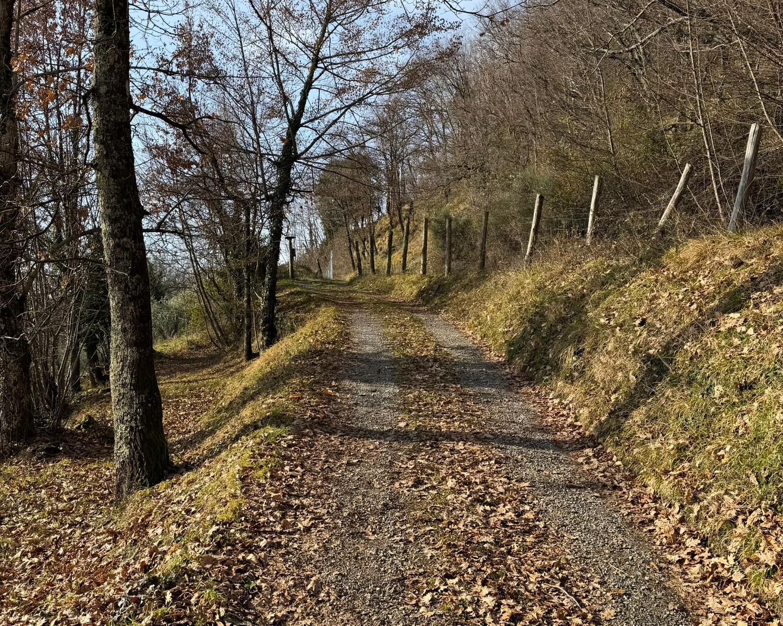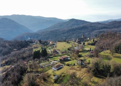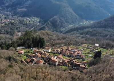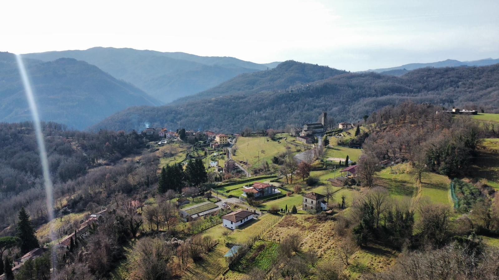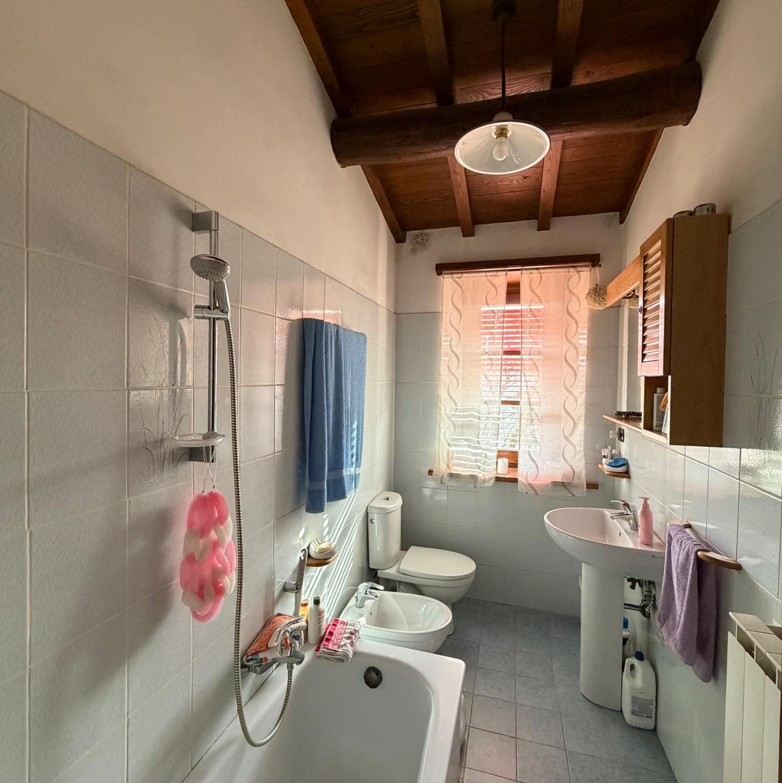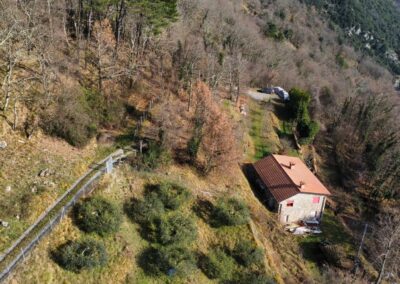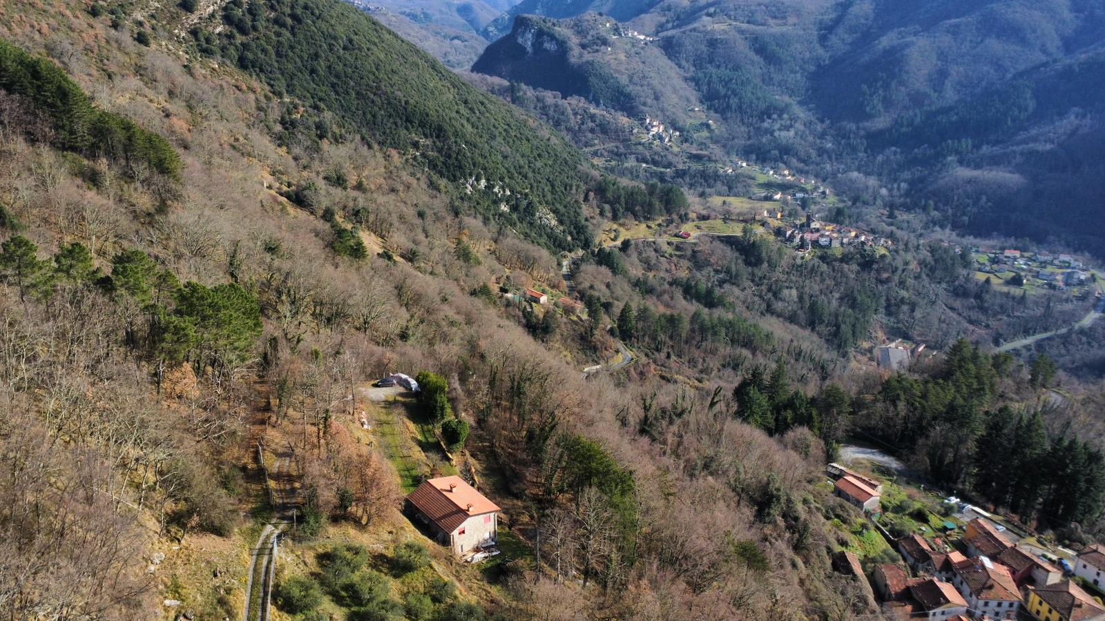 For sale: a charming independent house with over 4,000 sqm of terraced land, fully fenced with posts and wire, set in a quiet and secluded natural environment. The property is reached via a well-maintained gravel road; the final stretch, within the property, gently slopes through a chestnut woodland and becomes flat near the house, offering ample parking space.