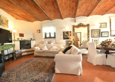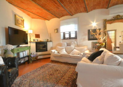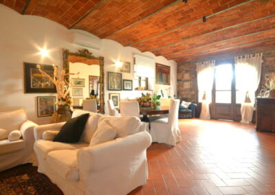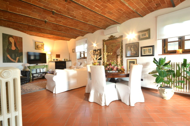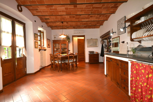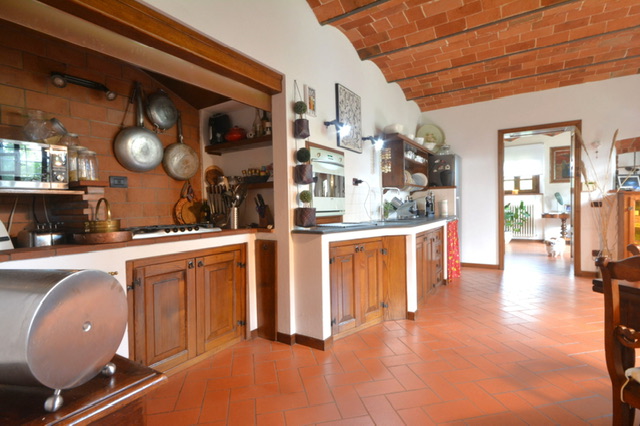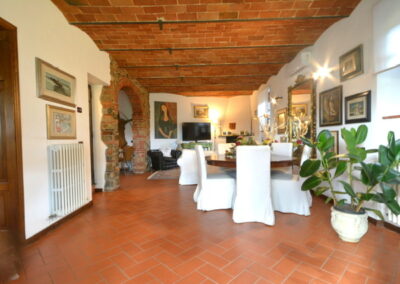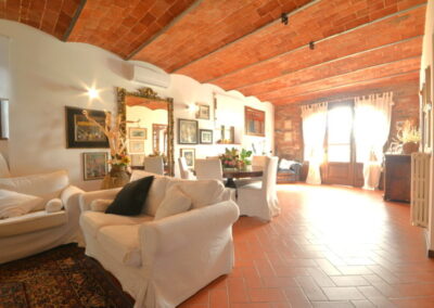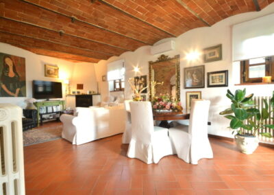 The home preserves the soul of Tuscany through brick-vaulted ceilings, terracotta floors, and chestnut double-glazed windows, all beautifully enhanced by a high-quality renovation (2000s) that ensures modern functionality and refined elegance.