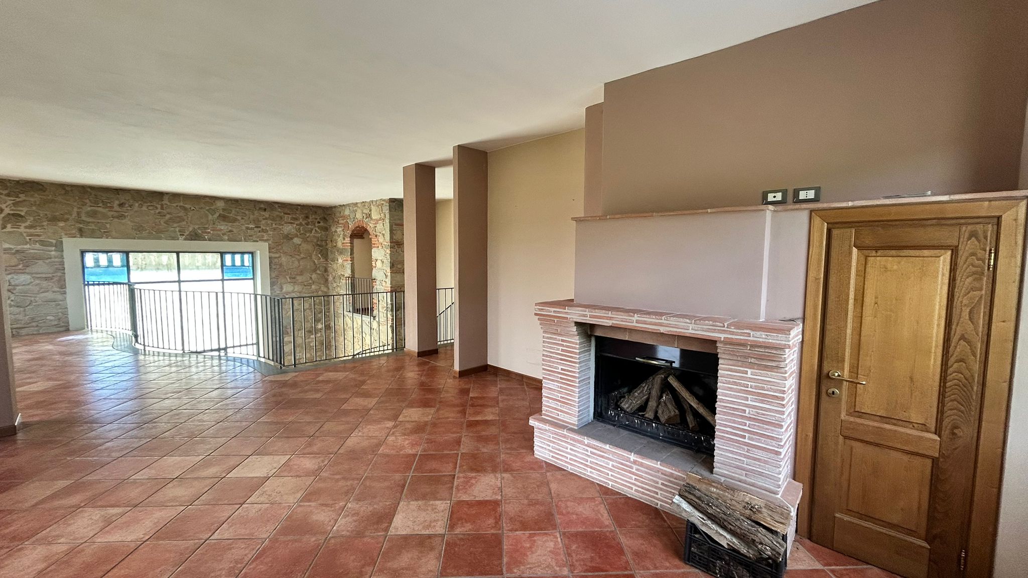 Spacious living room with fireplace