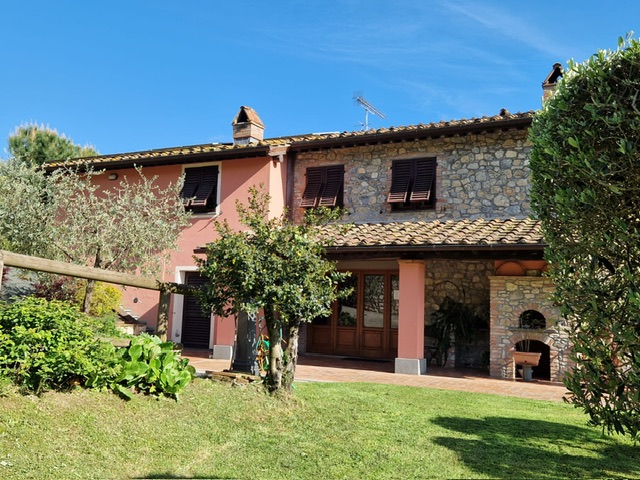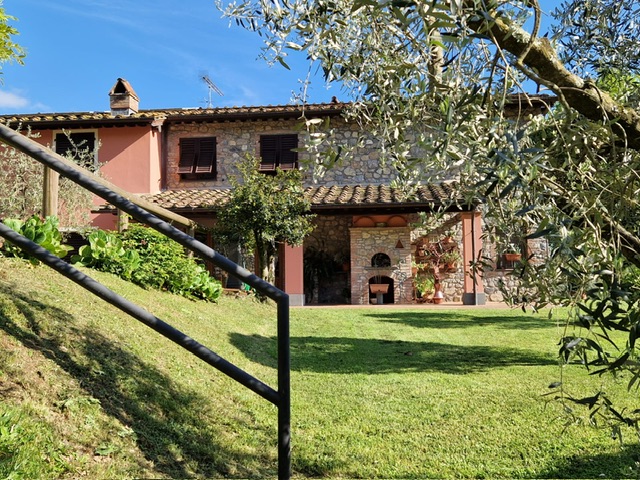 In a splendid panoramic position nestled among the rolling Lucca hills, approximately 320 meters above sea level, lies this beautifully restored Tuscan farmhouse — a perfect blend of authentic charm, modern comfort, and sustainable living.